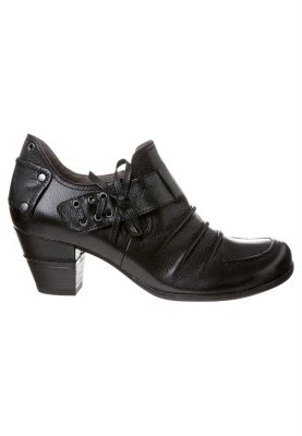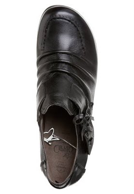 Le scarpe delle signore giocoso realizzato interamente in pelle - nero Ledertrotteur HANNE di Caprice. La pelle raccolte sul collo del piede è prova di grande design. Casual giocoso laminato un piccolo ciclo di cuoio, il velcro regolabile. Quattro borchie in argento cerca di mantenere la linguetta in pelle sul tallone. Moda nobile e molto confortevole. Caprice è il nero comfort scarpa città con 'camminando per aria' il sistema di ammortizzazione nel tallone. Una semplice introduzione è prevista dalle zone cucite in stretch. Il burro morbido plantare nulla lascia a desiderare. Hanno letteralmente correre con i Trotteur Caprice HANNE in nero su aria.